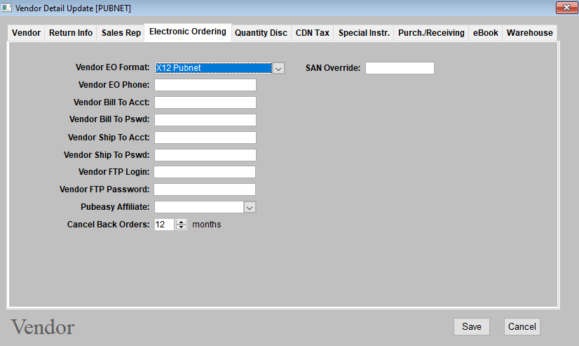 - Select X12 Pubnet from the Vendor EO Format dropdown selector.