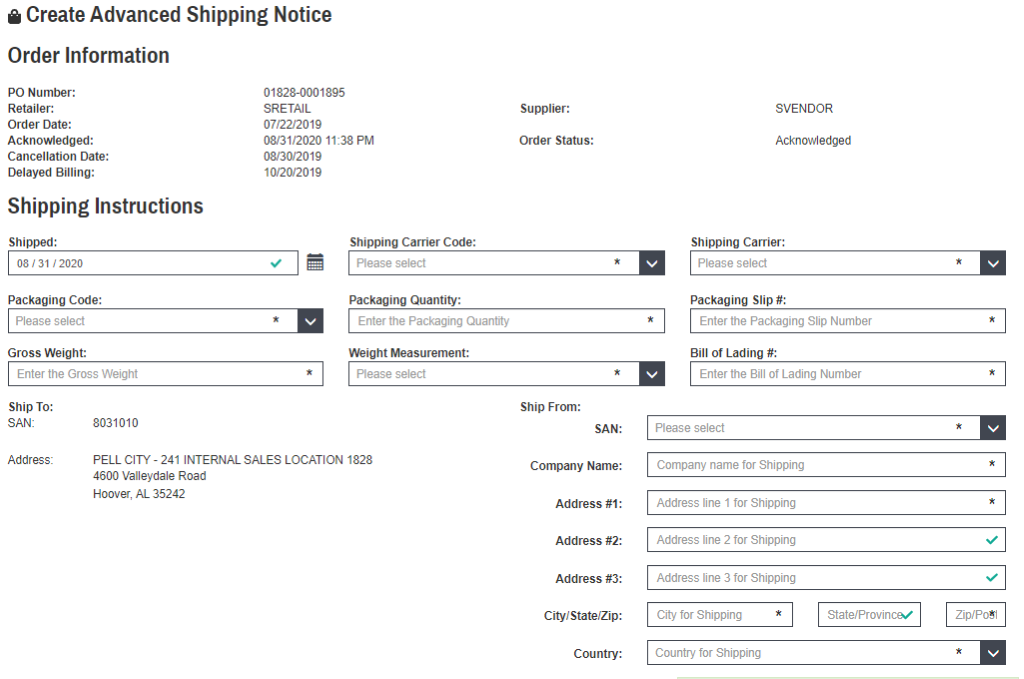 >> You will be returned to the tab containing Order Manager with the sent Advanced Shipping Notice open.